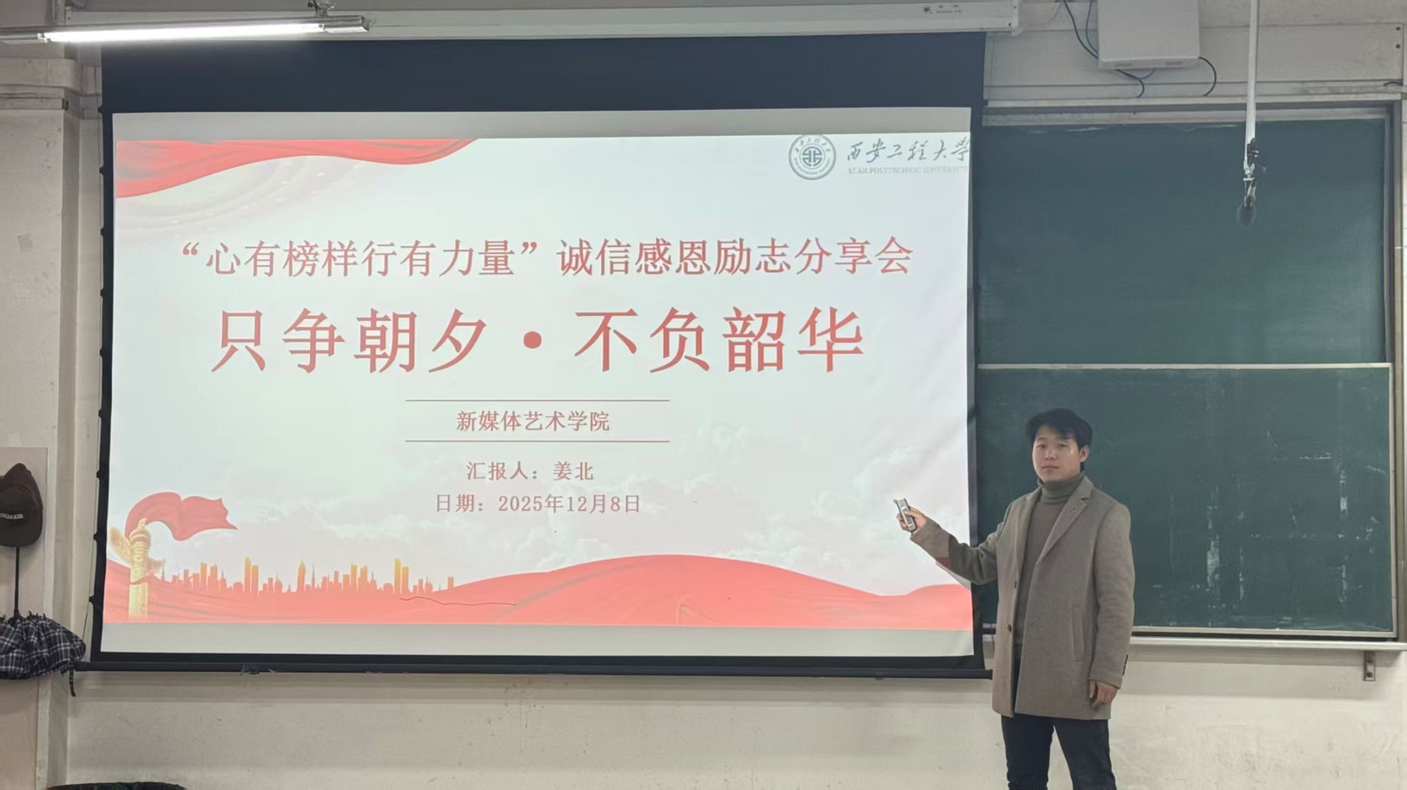 2025年12月8日,日本三级 “心有榜样 行有力量”诚信感恩励志分享会在金花校区8号楼415教室顺利举行。分享会由国家奖学金获得者姜北、国家励志奖学金获得者谢梦晗分享,2025级140余名同学参加。