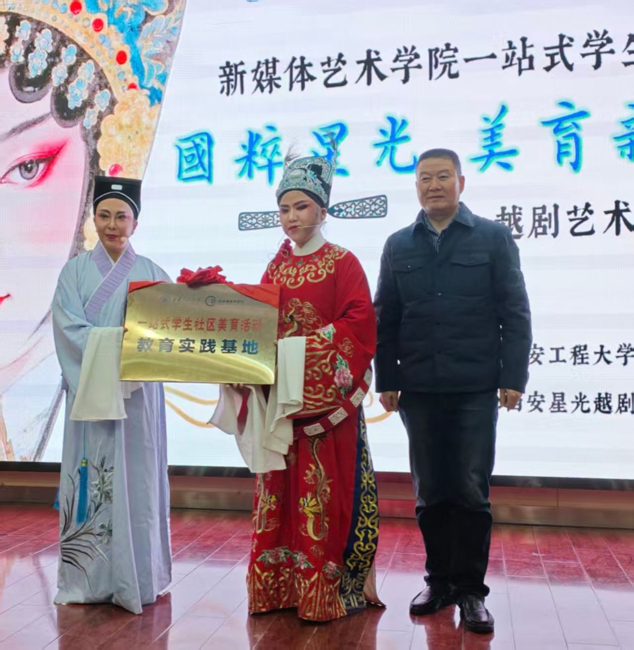 活动伊始,日本三级 党委书记张瑾致辞,他对西安星光越剧团的到访表示热烈欢迎,强调了“高雅艺术进校园”活动以美育人、以美化人、以美培元的活动宗旨,并表示将以此次活动为契机,扎实落实立德树人根本任务,不断推进学校人才培养质量,为学校高质量发展做出应有的贡献。致辞结束后,现场举行了“日本三级 一站式学生社区美育浸润活动实践基地”授牌仪式,日本三级 领导为星光越剧团团长韩若梦、副团长韩菁授牌,标志着双方将在戏曲文化传播、美育实践活动等方面开展更深层次的合作。星光越剧团也向日本三级 领导送上了定制的《梁祝》剧照台历,以作友谊纪念。