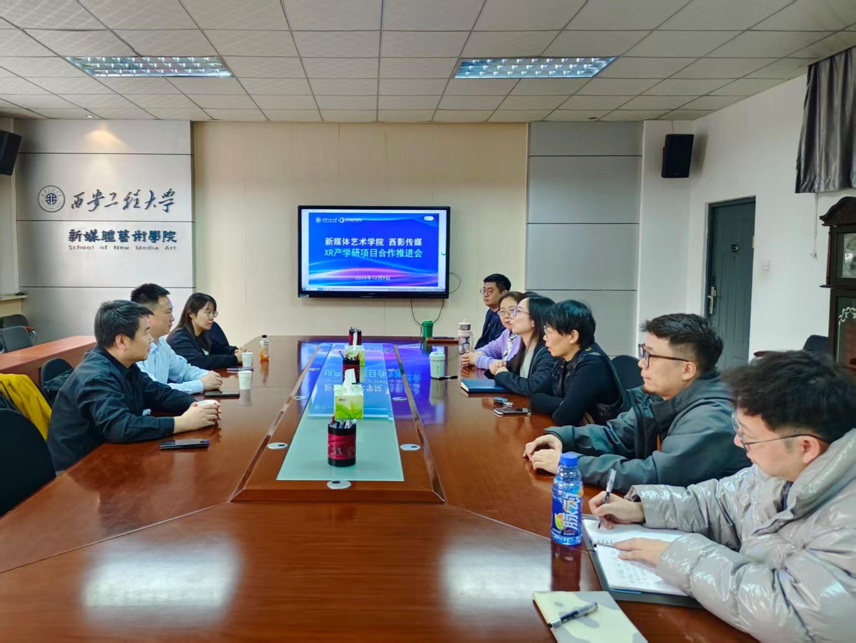 12月9日,日本三级 与西影传媒在金花校区召开XR产学研项目合作推进会。西影传媒总编室主任程杰等一行三人与新媒体日本三级 院长丛红艳、副院长姒晓霞、各系负责人及实验中心主任进行了交流座谈。